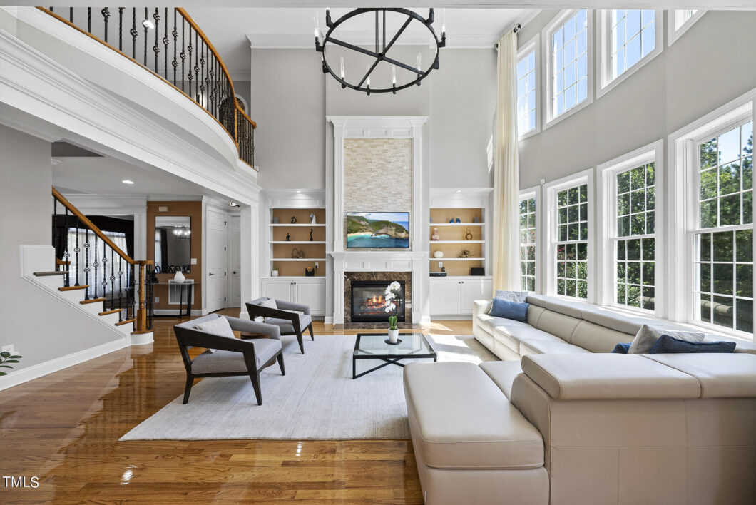 Stunning Southbridge at Cary Park home with FINISHED BASEMENT nestled on an incredible landscaped property that BACKS to PROTECTED WOODS. So many HIGH END UPDATES including an ALL NEW GOURMET KITCHEN featuring brand new custom Cabinetry, Italian quartzite countertops, high end appliances, double oven, custom venting hood. Spectacular modern new light fixtures throughout the home. Gorgeous HARDWOODS FRESHLY REFINISHED on main level and newly installed hardwoods to match on second floor. DRAMATIC 2 STORY GREAT ROOM with floor to ceiling custom window treatments. Enjoy your favorite movies in the comfort of the INCREDIBLE THEATRE ROOM! Retreat to your Huge Primary suite w/ private sitting area and spacious primary bathroom. FIRST FLOOR BDRM/FULL BATH! Entertain on your Large SCREENED PORCH or the Stone patio with outdoor kitchen. Garage was upgraded with great organization and epoxy flooring. Enjoy the walking trails & Lake just steps from your front doors! Convenience abounds w/ restaurants, shopping, entertainment, great schools & easy access to 540. Optional Cary Park Pool Club membership. WELCOME HOME!